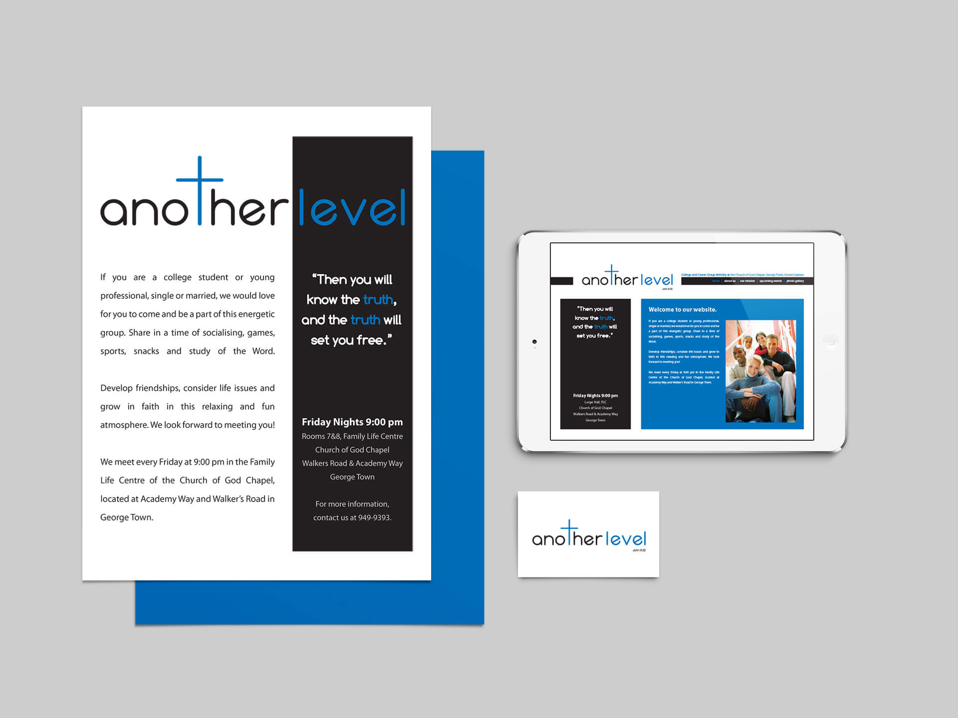 The branding for Another Level Young Adult Ministry was developed to accentuate the cross and the message of the ministry.